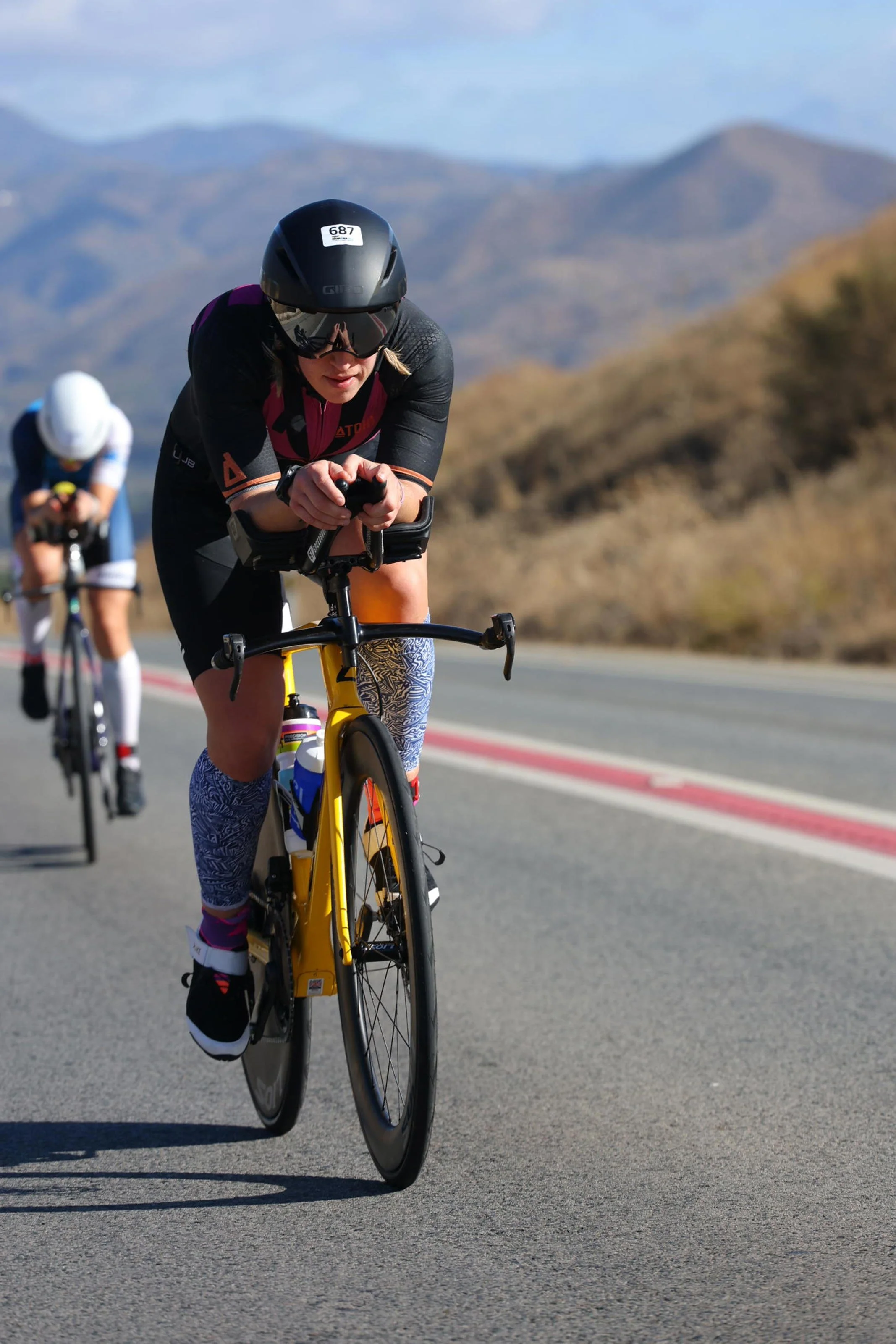 The bike leg was where Nat’s experience and equipment came together. Her LIOS Javelin triathlon bike was fitted with a LIOS 67mm carbon front wheel and a LIOS carbon disc rear wheel, delivering aerodynamic stability on the long climbs and control through the gusting crosswinds.