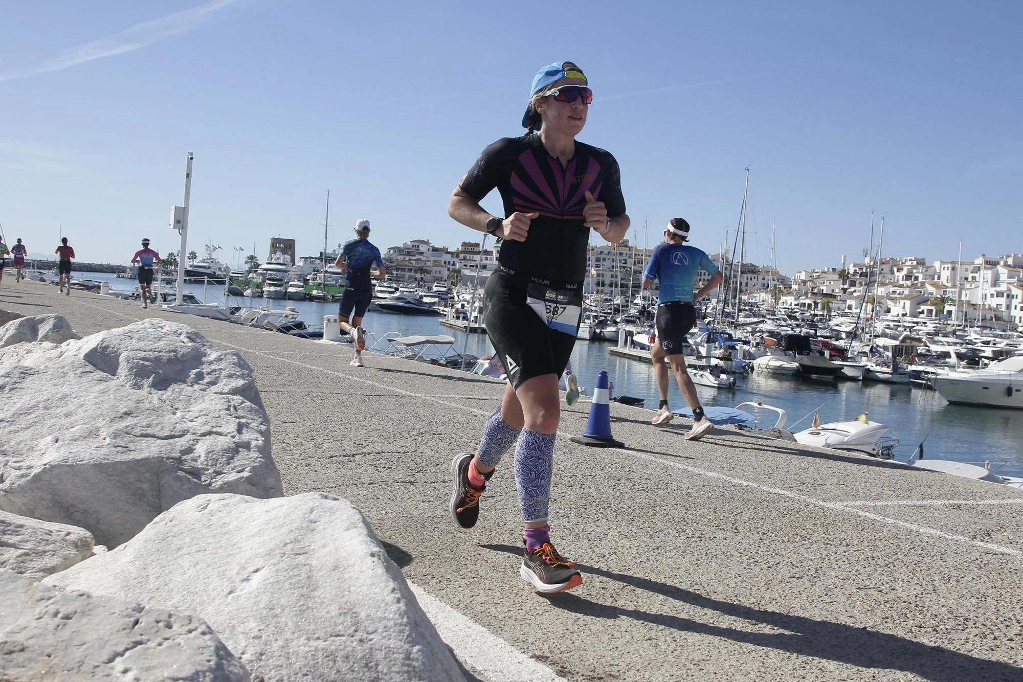Managing pace and injury through the run along Marbella’s seafront promenade.